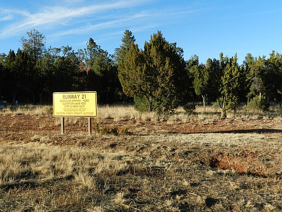 Imagine the fly-in possibilities! This one of a kind 4.12-acre lot at the prestigious, aviation-oriented Mogollon Airpark (AZ82) will accommodate a very large hangar and home. Conveniently located at the NW corner of runway 21, it affords over 276' of taxiway access. This scenic high desert heavily treed lot has a mix of juniper, pinion and tall pines. The easy to build terrain varies from level, rolling to gently sloping. Utilities including electric, water and phone/DSL are available on the property. Local builder recommendations available.At 6,658 MSL it is the perfect fly-in escape from the summer heat or enjoy all 4 seasons. Come join us, we look forward to seeing you at the Mogollon Air Park, Arizona's finest and friendliest residential aviation destination.