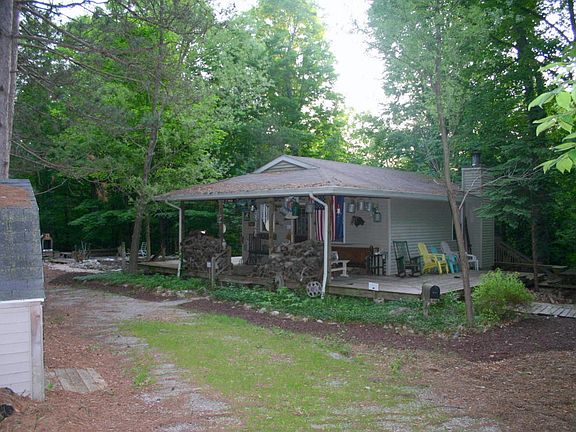 Truly a fisherman's paradise. This two bedroom, one bath home on 3 acres overlooks the N. Branch of the White river. There is a slider off the main floor Master, cozy fireplace in the living room and extra bedroom and walk-out family room in the lower level along with a storage room for your fishing gear. Enjoy a stroll through the woods on your private deck walkway which leads to a fishing dock on the banks of the White river. You can also just relax on the wrap around porch and enjoy the peace and quiet of this unique property. There is also a large detached garage to store your snowmobiles or 4-wheelers, a wood shed for the fireplace or bonfire pit and a bunk house for your overflow of guests wanting to spend the weekend.