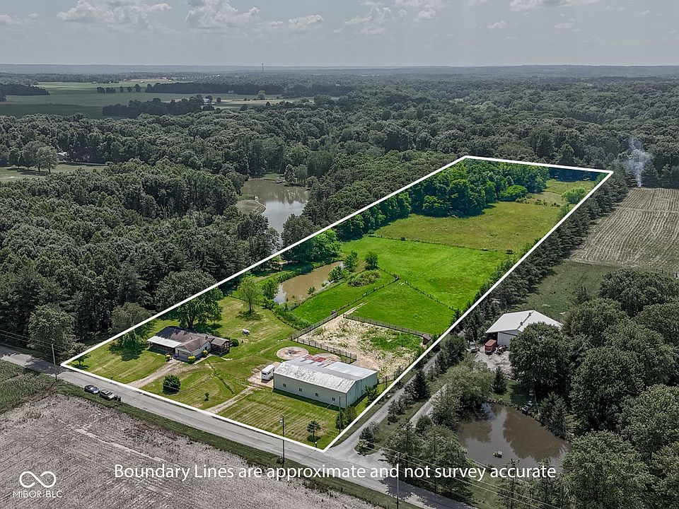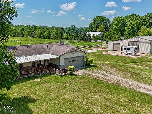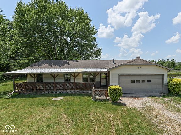 Nestled at 2868 S 525 W in Charming Trafalgar, this Ranch Home in Johnson County *ON 9.33 ACRES* Offers a Unique Opportunity to Embrace a Comfortable Lifestyle in a Serene Setting! Features: 3 BEDROOMS + 2 FULL BATH ~ 1,256 Sq. Ft. ~ Formal LIVING ROOM w/Lots of Natural Light; GREAT ROOM featuring a Wood-Burning Fireplace that serves as a Warm Focal Point, complemented by a Wood Wall, Beamed Ceiling, & Crown Molding that adds Character & Depth; EAT-IN KITCHEN offers a Modern Touch with Shaker Cabinets (Ample Cabinet Space!) & Tile Backsplash, blending Functionality with Stylish Design + Stainless-Steel Appliances, Pantry, & Can Lighting - & the Perfect Breakfast/Dining Area; Convenient Laundry Closet w/Cabinets; Large PRIMARY BEDROOM w/Full Shower; 2 Additional Nice-Size Bedrooms; EXTERIOR: Awesome Screened-In Porch Invites You to Relax & Enjoy the Surroundings in this Tranquil Retreat, while a Deck Provides an Ideal Space for Gatherings! Property Includes Two .25 Acre Ponds + Huge Barn w/Paddock Area~ The Property's Rural Area Location and Woods View offer a Peaceful, Private Setting that is Hard to Find!