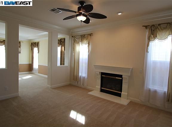 Spectacular Montague model by Toll Brothers in Dublin Ranch Golf Course. main double doors open onto volume high ceilings with hardwood floors. Private 1st floor office with built-in cabinetry. Well appointed kitchen with stainless refrigerator, slab coun