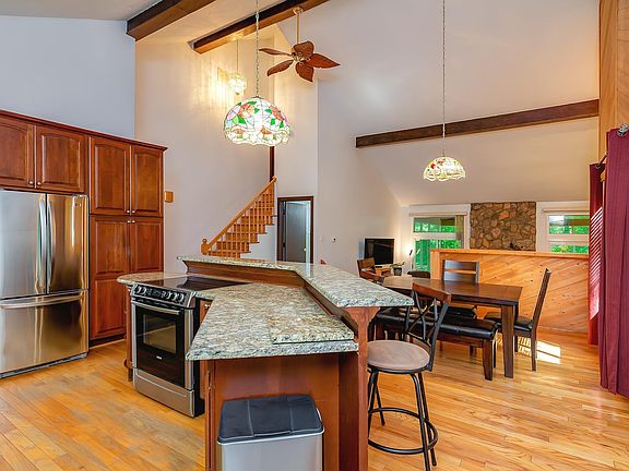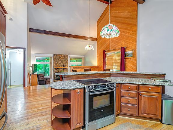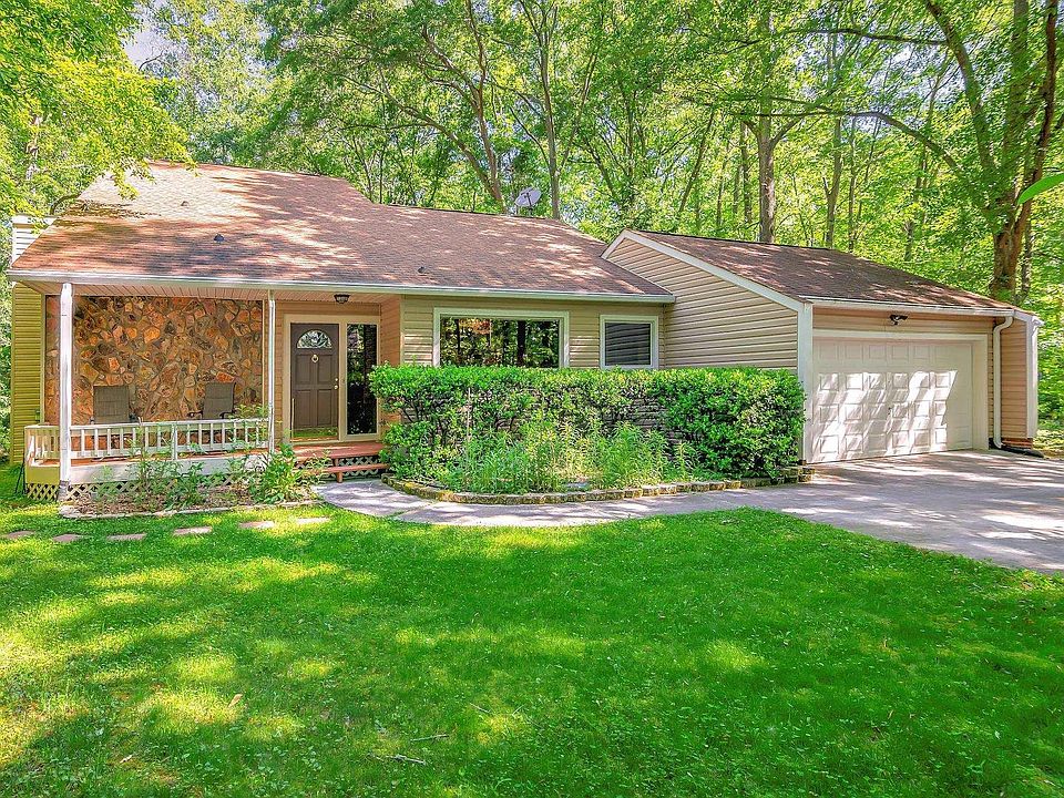 Exquisite nature inspired property (Certified Wildlife Habitat) with 3 bed and 2 bath on 2.3 acres. Dining room with hardwood floors, vaulted ceilings and exposed beams is the perfect place to gather around the table with friends and family. The kitchen is fully equipped with granite counters, breakfast bar seating, French Door refrigerator, smoothtop stove, dishwasher, Lazy Susan, slide out spice rack and space saving pull-out pantry panels. Recessed great room with wood burning fireplace with stone surround and sliding doors lead out to the oversized screened porch with vaulted ceiling which overlooks the private backyard. In addition to the screened porch, there is a large 2 tiered deck to enjoy while admiring the natural gardens, mature trees, and plenty of nature in this backyard oasis. There is a spring fed creek in the rear of the yard with an island! Back inside, the main floor has 2 bedrooms and a full bath with granite counters, a bowl sink and linen cabinet. Upstairs you will find the master bedroom with bamboo floors, crown molding with lighting, huge walk-in closet plus 2 more closets. Updated master bath has tile floors, garden tub/shower with granite surround, double sinks and vaulted ceiling. Additional features: 2 storage sheds, gutter guards, compost area, storage under porch, and more. Write your offer today! Check out the 3D Virtual Tour!