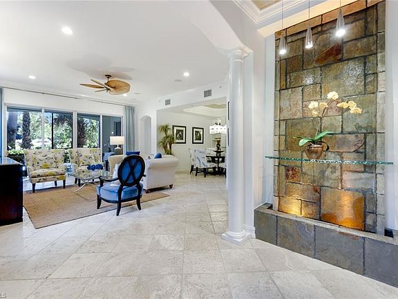Luxury living in Castillo at Tiburon, this ground-floor end unit showcases two generous bedrooms, a comfortable den, and two full baths. This offering includes designer furnishings and a transferable Signature Membership (valued at $45K). Upon entering this impressive property, you are greeted with a cascading water feature which sets the theme for the entire interior. Relax on your private lanai while enjoying views of the legendary Gold Course of Tiburon which plays host to three separate professional tour televised golf events. This well-appointed home is a former model and features a renovated kitchen and baths, recessed lighting, surround sound system, custom closets, built in wine cooler, hurricane shutters, and an attached two car garage. The most beautiful community pool in all of Tiburon is a short stroll away and there is a convenient grilling area located just outside your door. Your Signature membership grants you access to Tiburon's 5-star amenities including golf, tennis, fitness center with classes, several dining options, the Club's award-winning pro-shop, and the neighboring Ritz-Carlton Golf Resort with The Reservoir Water Experience. This home presents an amazing opportunity for the discriminating buyer to experience the extraordinary.