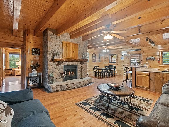 Smoky Mountain views from this impressive 5 Bed / 5 Bath Cabin and fully furnished! Located in The Preserve with all the desirable amenities you could want. Open living area with beautiful river rock stone fireplace and large screened in back porch, perfect for entertaining, dining, or just enjoying the view from the hot tub. The kitchen features countertop seating and includes all appliances and utensils one might need for a nice long getaway. Kitchen is open to the dining area and living room. 2 spacious King Suites on the main level, each with jetted tubs, walk-in showers, and double vanities. The second floor hosts a massive media room / game room with pool table, laundry room, 2 Queen Suites w/ full baths, a bunk room w/ full bath, and a loft perfect for games or additional sleeping. With incredible rental potential, this cabin is a MUST SEE.