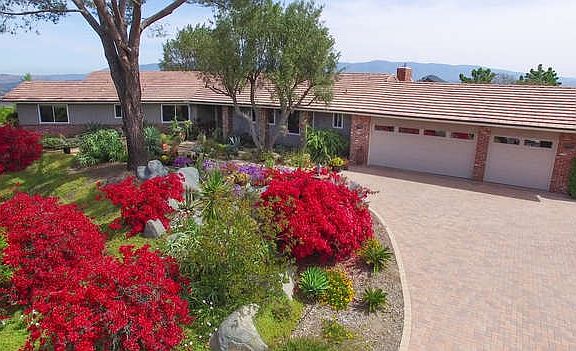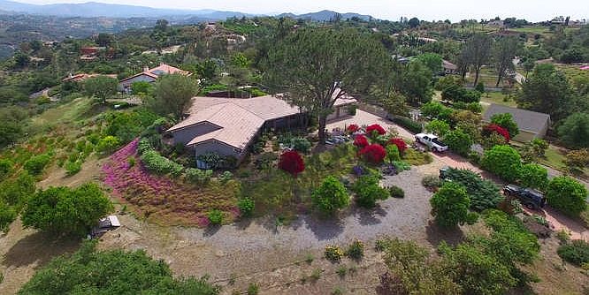 Single-level highly upgraded contemporary ranch style home in Hidden Meadows! Phenomenal VIEWS for miles! There are views of winter snow on Palomar Mountain and Mt. Baldy and morning fog in the Moosa Creek valley below. Owner has spent $160k + in upgrades & improvements. Feature list includes: New concrete tile roof & gutters, Solar panels (owned), Dual pane windows/sliders, Remodeled kitchen & family room, Situated on 2.5 usable acres, fully fenced property with automatic security gate. Read on. .. Other upgrades and features include: New insulated garage doors, Popcorn ceilings removed, New carpet & tile installed, Repaved entry and driveway (brick pavers), Custom window treatments, Added ceiling insulation, Heat pump replaced, Upgraded master shower tile, Exterior recently updated (wood replaced with stucco). .. .. Kitchen remodel includes granite counters, re-surfaced cabinets, new ceiling stove vent, & all new appliances. Family room features: a beautiful marble fireplace, new fireplace insert, wood beam ceilings, replaced pantry doors, added lighting. .. .. .This property has flourishing fruit trees: lemon, tangerine, navel & valencia orange, grapefruit, peach, apricots, figs, & avocados- WOW! Owners also currently grow and sell several varieties of flowers to local purchasers. There is also a lath house which is a valuable asset in raising seedlings, rooted cuttings, and young plants prior to setting them out in the garden. Extensive irrigation system is in place to either continue existing flowers & trees or you may consider converting to a vineyard?! Several other neighbors have started growing grapes in the area. Better hurry on this property!