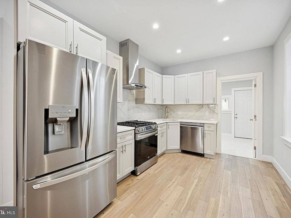 Welcome to 2869 Aramingo Avenue—a beautifully renovated twin home in the heart of Port Richmond. Step up to the inviting front porch, perfect for people-watching, summer reading, or enjoying your morning coffee. Inside, the main level features a bright straight-through layout with plenty of space for a family room, dining area, and kitchen. An electric fireplace sets a warm and modern tone, while the kitchen impresses with stainless steel appliances, light gray cabinetry, and marble countertops and backsplash. A convenient half bath completes this level which also has hook ups for an easy access laundry area. Upstairs, you'll find three well-lit bedrooms, all enhanced by recessed lighting. The primary bedroom stands out with triple-pane windows offering neighborhood and city views. A refreshed full bathroom with a tub/shower combo and marble-style flooring serves this level. The home also includes a fully finished basement with LVP flooring, high ceilings, and a second full bathroom featuring a walk-in shower—ideal for additional living space, a guest suite, home office, or gym. Out back, a private fenced-in courtyard offers the perfect setting for al fresco dining, gatherings, or simply unwinding outdoors. Situated in Port Richmond, this home offers quick access to major shopping destinations including Home Depot, Target, and ShopRite. Local favorites like Tacconelli’s Pizzeria, Stock’s Bakery, and Temple Health’s Northeastern Campus are just a short distance away. Don’t miss your chance—schedule your tour today!