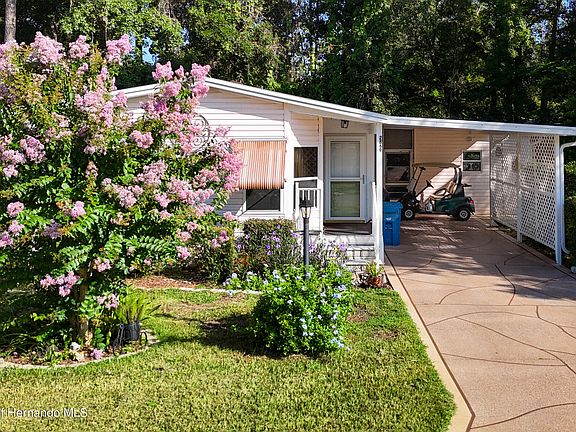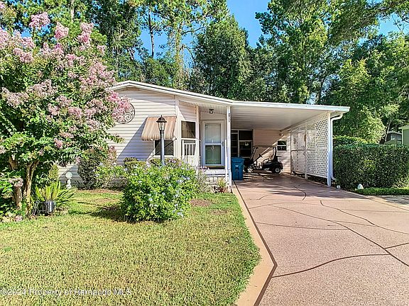 Adorable and FULLY FURNISHED 2 bedroom, 2 bath home is located in the desirable 55+ community of Sylvan Grove/Glen Raven. As you approach you will immediately notice the deco designed driveway with a side paver walkway. Step inside to a spacious living room/dining room combo with newer carpet and high ceilings. The expansive eat-in kitchen features lots of cabinets, newer counters and ample space and storage for all your cooking needs. The master bedroom is generous in size, has newer carpets and double closets and features a master bath. The second bedroom is also roomy in size. A dedicated laundry room includes the washer & dryer and leads directly to the storage room. Relax and enjoy your morning coffee or entertain your family/guests in your enclosed Florida room. Other amazing features include the roof replaced in 2022, new flooring throughout, and well-maintained. The community features great amenities such as a pool, shuffleboard courts and recreational facilities. The clubhouse offers lots of activities. Golf courses, Weeki Wachee Springs State Park, Rogers Park, Pine Island Beach, and other popular swimming destinations are only a short drive. Located close to shopping, restaurants, hospitals, entertainment, conveniently located close to the Suncoast Parkway for work or play! Enjoy everything Tampa Bay has to offer from the new Downtown Riverwalk, TOP US BEACHES, boating, fishing, golfing, cultural entertainment, and museums...and of course year-round beautiful weather! Furniture, contents and Golf Cart with brand new batteries included.