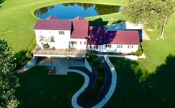 There are some properties that are "exceptional", and this one truly is. This 2 story traditional home with full finished walk out basement is set in a relaxing country environment. Cheaper than Building!!! The home has over 2,900 sq ft of finished living space (check out the room sizes below). There is 5 well manicured country acres with private stocked pond. A Full-length covered front porch with railing and gorgeous landscaping will welcome you in. The inviting Front Entry has a beautiful front door and has tasteful flooring and paint. The Living Room is amazing yet comfortable, featuring high Vaulted solid wood ceilings, an abundance of windows with excellent views, and is open to the Kitchen. The Kitchen and Dining Rooms are large and have an abundance of Solid wood cabinetry, granite counters, and full stainless steel appliance package. There is an fabulous pantry that is a necessity in today's homes. You have wonderful views to the rear of the property from the kitchen window over the sink as well as w the double doors out to the large deck just off of the Dining Room. This Deck is perfect for relaxing and entertaining! There are 2 large bedrooms and a full bath on the main level as well. A spacious Entry from Garage to the main part of the home is large enough to use as an office. The Laundry is large and has built-ins. Let us head to the second floor which you will find a large Loft area that overlooks the Living Room. This space is perfect for a study area or play area. There is additional storage here also. The Primary Suite Bedroom is nothing short of grand and you will feel as if you are on vacation with breathtaking views from the abundant windows and private upper deck. The En-Suite Bathroom is one that is simply perfect with dual sinks, large soaking tub, separate shower, and tons of cabinet space. The Primary Suite also has a huge walk in closet, as well as a bonus area that could be used for office or exercise. Let's proceed to the amazing basement of this home! The ceilings are tall and the updated finishes make this basement truly part of the entire home! You will find easy walking stairs making all parts of the accessible with ease. The basement is fully finished and has two large bedrooms, a spacious full bathroom, a theater room, and a large L Shaped bar complete with sink and mini fridge. There are double doors to the walk out patio. This area is beautiful and is enveloped by beautiful landscaping. There is a winding sidewalk that continues to the main level, allowing everyone to enjoy both spaces with ease. Storage is abundant throughout the entire home. With a home this size, the layout and flow are imperative and the builders nailed it, this is really a perfect house plan, and is not overwhelming at all. An over sized s car attached garage, rear & upper deck, front porch, and walk out basement are just some of the great extras. The pond is stocked with Bass, Crappie, Hybrid Blue Gill, & Grass Carp, and is situated perfectly in front of the property. The rolling yard is perfect and everything is positioned perfectly. The entire property is well kept and maintained, the grounds are picture perfect and I promise you will have frequent views of wildlife. Newer Metal Roof, New Carpet basement rooms 2020, New Water Heater New Furnace-March 2022 AC Unit-March 2022, and many more updates make this property move in ready from the start! Room sizes: Foyer 5.5x5.3, Living Room 18.7x13.5, Dining 11.4x10, Kitchen 11.5x13.5, Pantry 7.5x5, Office 12.3x 11.6, Laundry 11.5x5.5, Bed 14.4x9.6, Bed 11.6x11.3, Bath 8.7x5.2, Garage 29x23, Primary Bedroom 28.1x14.5, En Suite Bath 11.5x8