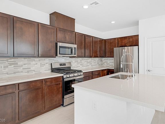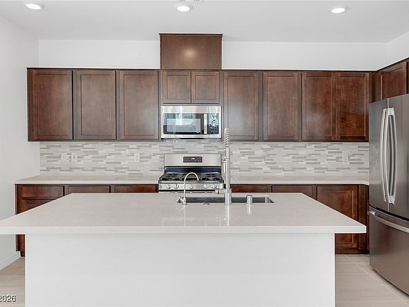 Welcome to your new home in the desirable Palmer Ranch community! This nearly new two-story residence offers 3 spacious bedrooms, a versatile loft, and an additional room that can easily convert into a 4th bedroom—perfect for a growing household or home office. Ideally located just five minutes from both I-15 and I-215, this home combines convenience with comfort. Freshly painted and barely lived in, it feels like new! The downstairs primary suite features a large walk-in custom closet and an adjoining bath with dual sinks. Enjoy a bright, open living area with expansive windows that fill the space with natural light and a ceiling fan for year-round comfort. The modern kitchen showcases a large island with breakfast bar seating, stainless steel appliances, recessed lighting, and abundant cabinet space—ideal for both everyday living and entertaining. With its thoughtful layout, prime location, and move-in-ready condition, this home offers the perfect blend of style and functionality.