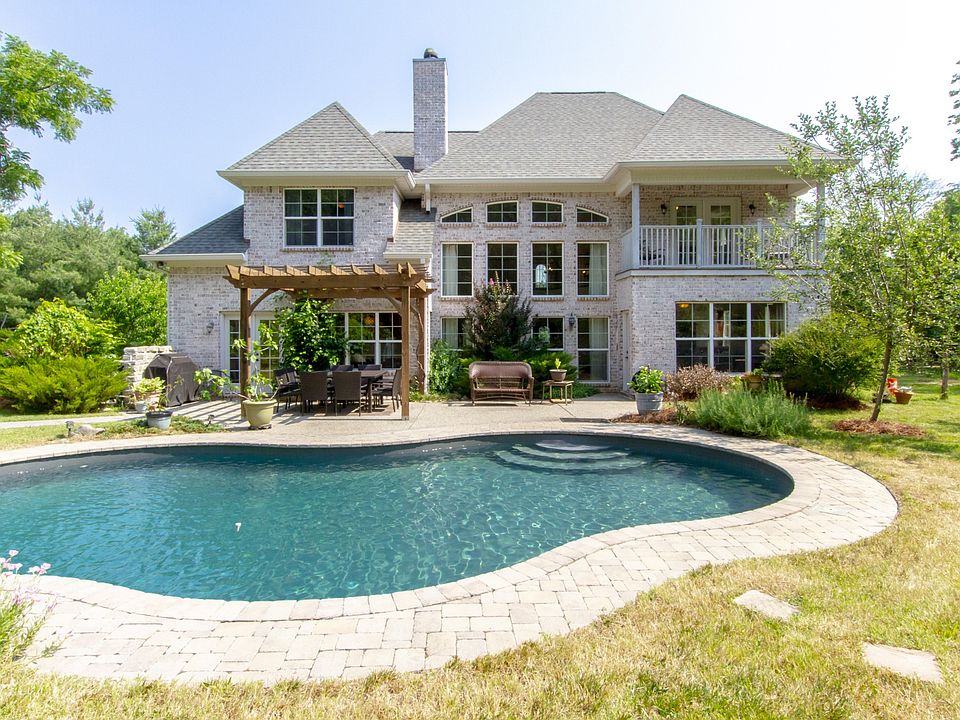 PRICE ADJUSTMENT! This beautiful home nestled on 7.34 acres is a paradise with woods and a meadow on the back of the property. There are so many great features about this home: Interior hickory wood floors, two-sided wood burning fireplace in kitchen and great room, home water filter system, radiant heated floors installed on lower level, radon venting installed, private balcony off the master upstairs, beautiful backyard view from the floor to ceiling windows in the great room. Organic fruit trees and berry bushes grown in the backyard sanctuary, inground chem free ionized pool, new tree house and more. This lovely organic mini farm has a poplar wood barn, raised beds for your favorite herbs. Goat, donkey and chicken fencing and gates plus chicken coop are negotiable.