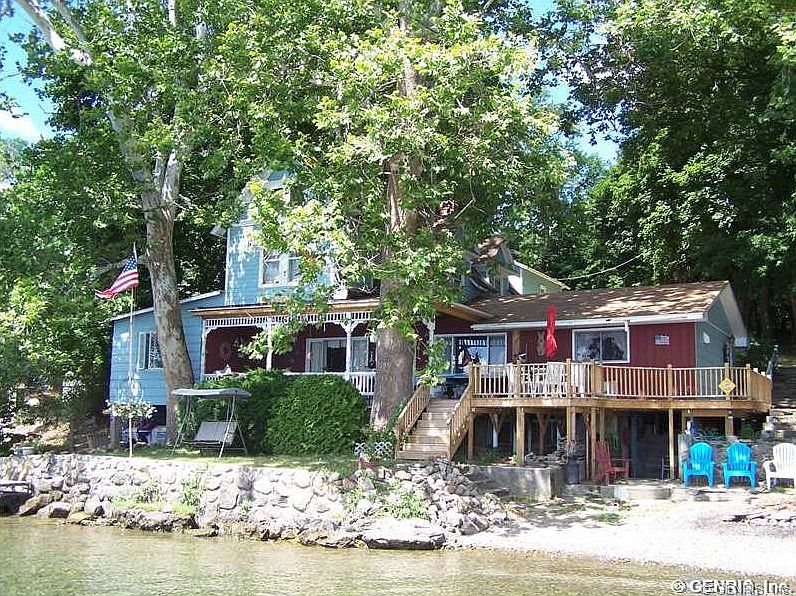 Century old Keuka Lake home right on the shore with delightful front porch charm and character throughout! Extra large updated kitchen and laundry, 1st flr bedroom, gas fireplace, hardwood floors and natural woodwork! Original wainscoting in 4 upstairs bedrooms with updated bath! Approx 96' natural shoreline and front yard! 2 car garage with spacious lawn and parking! Public water, sewer and nat gas! A very special property!