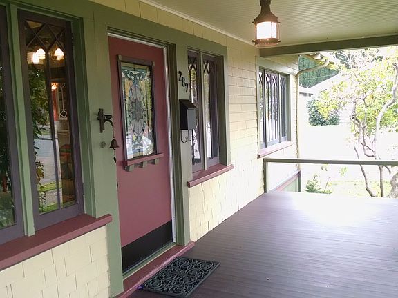 Charming, remodeled 1914 Craftsman home in a quiet, historical neighborhood with a large front porch, nice landscaping and a shingled exterior. Solid old growth redwood construction with original wood wainscoting, 9' coffered ceilings, built-ins, decorative windows and solid wood floors. Darling, remodeled custom kitchen with glass front cupboards, wine racks, slate floors, granite tile counter tops and a breakfast nook. Renovated bathroom and bedrooms. Large, beautiful gas fireplace with marble surround. Stained glass features and large windows throughout the home. Perimeter foundation with earthquake retrofitting, chimney removed, secured perimeter. Security system, small basement & large attic that could be converted into usable space. New roof being installed. A must see property!