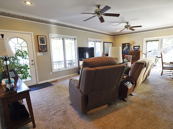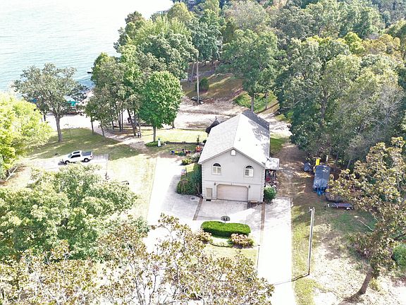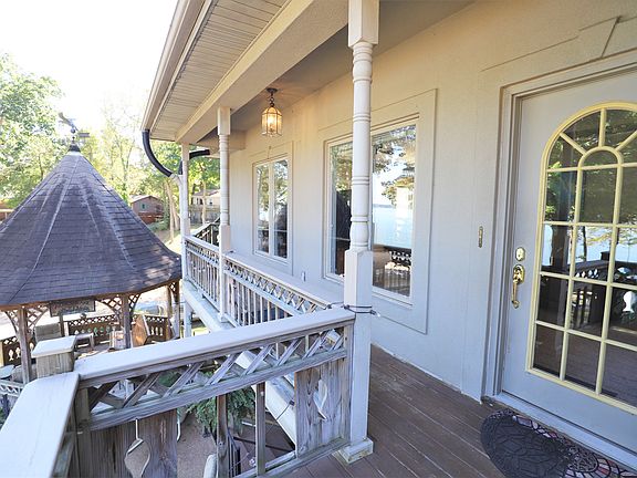 WATERFRONT HOME WITH ROCK BEACH! Beautiful custom built home with enough room for the entire family! Main floor features gorgeous main lake views from living, dining and kitchen area. Additionally on the main floor is laundry two bedrooms and one bath. Upstairs features 3 bedrooms, 1 bath and large family room with kitchenette over looking main lake as well. Basement has a second family room, bath and kitchenette off of the covered back porch. Large attached garage off main floor large enough for 4 cars, boats or toys. Concrete circle drive has enough parking for all of your family and friends to visit. Nice 12X36 fixed dock with a system to pull in and out as the water level changes. Enjoy main lake views from the deck, patio or gazebo!