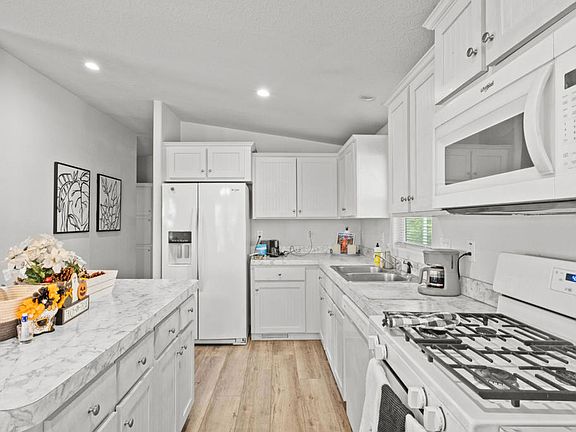 MUST SELL!!! BRING ALL OFFERS! Best value on the market - This practically new 2-bed 2 bath home with an office/ bonus room boasts an inviting open floor plan. The kitchen seamlessly connects to the family room, bar, and den/office area. Adorned with quartz-like countertops, the kitchen features new appliances including a dishwasher and range hood, along with a modern built-in oven and refrigerator. A convenient island that seats two add to the kitchen's appeal. The master bathroom offers a walk-in shower and a spacious soaking tub. Both bathrooms have been refreshed with new vanities, light fixtures, and nickel brushed hardware. The second bathroom includes a walk-in shower. The home features new carpeting and vinyl laminate flooring throughout, complemented by tasteful designer paint. The family room and master bathroom invite natural light. Conveniently situated, the home is within walking distance of the fitness center, pool, spa, and rear gate. This residence is located in a vibrant 55+ community that boasts an array of amenities, including five pools, four spas, a sauna, a clubhouse, illuminated tennis courts, a dog park, fitness facilities, an on-site full-service restaurant, an 18-hole golf course, and a putting green.