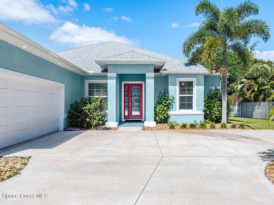 Built in 2017 on a spacious 0.83-acre lot w/ no HOA, this rare find offers city water & sewer, a 3BD + oversized bonus room—ideal for in-law suite, theater, or game room. The open floor plan showcases tile & wood-look floors, 10'-11' tray ceilings, dimmable can & ambient lighting, and 8' doors. The chef's kitchen overlooks the great room & dining area and features Lazy Susan cabinets, prep sink, peninsula seating for 5, coffee bar, under/over-cab lighting, and hybrid water heater. Enjoy a climate-controlled 2CG w/ attic storage, mini-split AC, and EV outlet. ADA-friendly features include wide halls, step-free entry, and walk-in showers. Relax on the tiled screened porch or enjoy the huge backyard. Outdoor highlights: concrete pad for future workshop, long T-shaped driveway, hurricane shutters, fully paid 9kW solar panels, and sodded yard w/ deep-well irrigation. Extras: alarm & security cameras ON 24/7, moisture-sensing bath fans, & flowering hedges. Just 6.5 mi to beach & MLB Airport