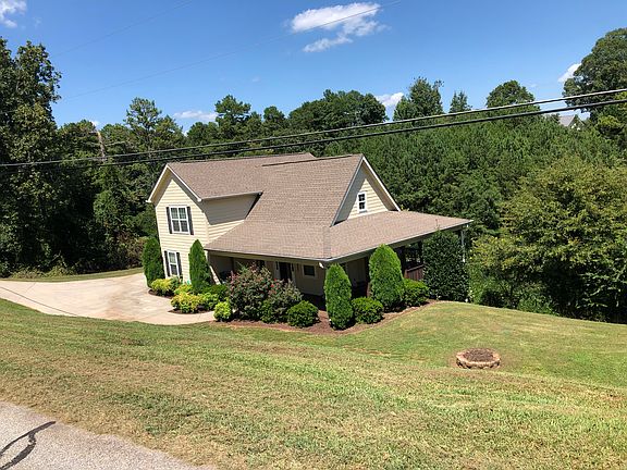A wrap around porch gives you indoor and outdoor living space. The home in Northern Banks Co is in great condition and move in ready. The Hardiplank style siding provides an elegant exterior with minimum maintenance. As you enter the home the living room features a grand cathedral roof line and a centered fireplace for a great entertaining atmosphere. The dining room area is located just off the kitchen and enjoys a bank of windows allowing you to take in the hillside views. The master bedroom and ensuite bath are located on the main floor and is spacious and large enough for any size bed. Upstairs there a two very large bedrooms serviced by a hall bath. The basement is of poured wall construction and with high ceilings. Plenty of storage space and room to grow if needed. Outside there's a great level side yard for play area or firepit. Located in Northern Bank County and convenient to Habersham and even Gainesville commuting.