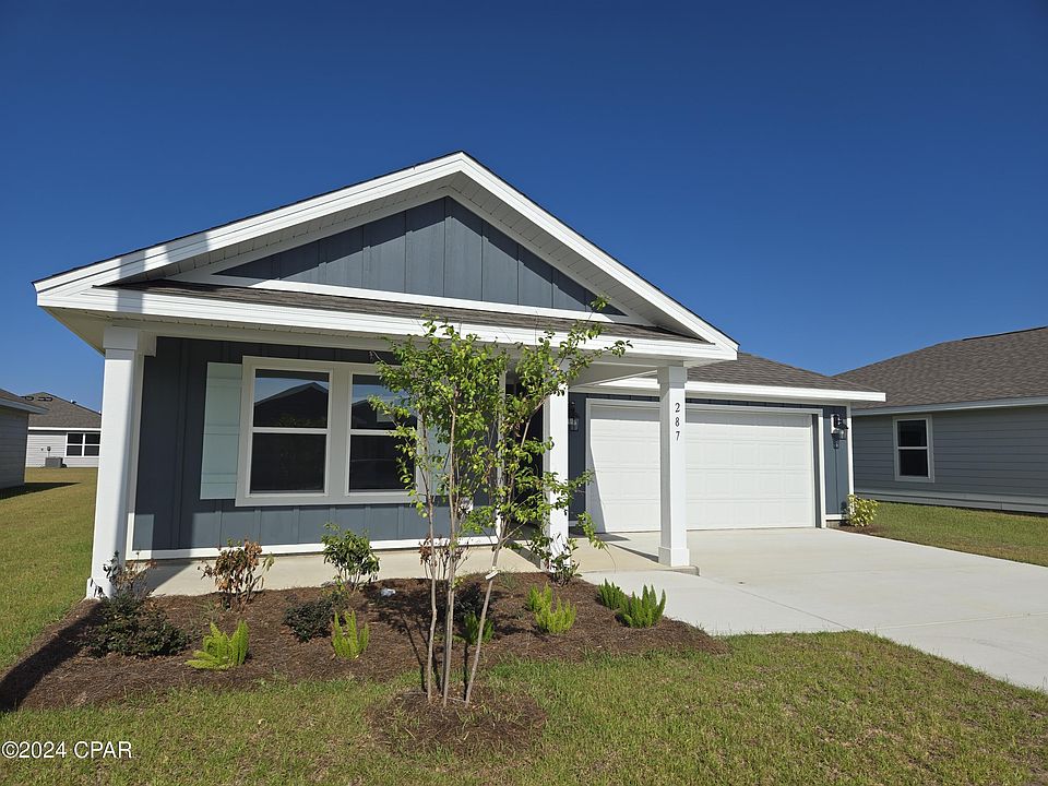 Park Place in Callaway is our closest new construction to Tyndall Air Force Base! This Lakeside floor plan is located on Lot 55 at 287 Boggy Creek Way. As you enter the Lakeside floorplan you will notice immediately the brightness of the entry hallway. is 5-bedroom 3 bath, 2012 square foot home is an open floorplan with two bedrooms separated by a full bathroom just off the front hallway and two additional bedrooms and a shared bath off the opening living area. The spacious primary bedroom leads to the bathroom featuring a large shower, double vanity, and a large closet. This home is perfect for entertaining or a large family as the living space is open and features a dining area, a kitchen with center island. Interior features of this home include beautiful Engineered Vinyl Plank flooring, cabinetry that is bright with Ivory tone, and quartz countertops. The bedrooms feature plush carpet. The exterior of these homes includes vinyl siding and fully sodded yards with flower bed at the front entry. Park Place is conveniently located close to shopping, recreational parks, schools, and is only a few minutes to Tyndall Air Force Base.