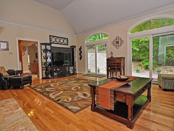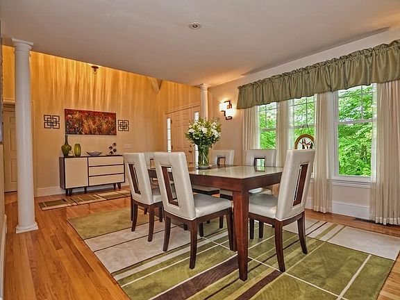 Privacy Galore! This property offers absolute seclusion. This bright, beautiful, custom designed home is located at the of a cul-de-sac on a fabulous private lot with almost EIGHT acres of beautifully manicured grounds! The long private driveway welcomes you inside this unique and impeccable home offering a great floor plan w/ a cabinet packed kitchen, stainless appliances, large center island, granite countertops, & adjoining sun filled breakfast area. Step into the cozy front to back living room with fireplace and sliders to deck overlooking gorgeous back yard. 4 generous sized bedrooms incl. master suite & bath, walk-in closet + sitting room. First floor office and guest/au pair suite w/ adjacent full bath. This home sits back from the street on a beautifully landscaped yard providing both privacy and serenity - PERFECT for entertaining! Don't forget the gorgeous heated in-ground pool, and outdoor jacuzzi tub - PLUS the separate GUEST HOUSE! This home is paradise!
