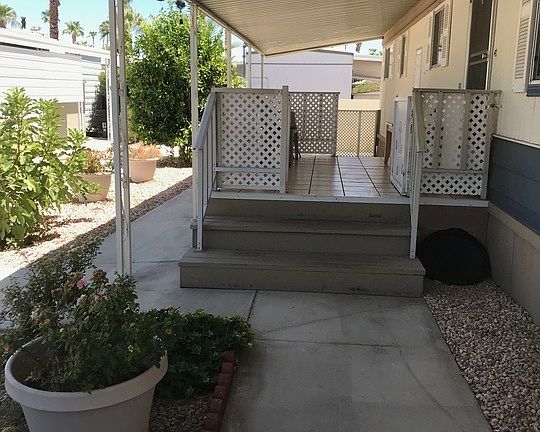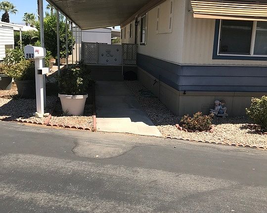 Great location near but not next to the Clubhouse for this cute 2 bedroom 1.75 bath home in Royal Palms Mobile Home Park, a 55 or better community. Most of the windows are already double paned and the central air is marked as a 13 SEER model plus lots of shade under awnings for energy efficiency. The galley-type kitchen has been re-imagined as well as the baths, the appliances included are a range and refrigerator. This is a vibrant Senior Park with a newly remodeled and modernized Clubhouse and Fitness Room. Close to shopping and dining, bus stop at Park Entrance. Lots of Tea Roses, automatically watered.