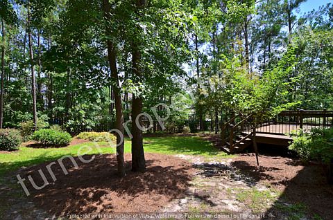 Beautiful 3 bedroom home on a cul-de-sac in the Berkeley Hall neighborhood of award winning Lake Carolina. Home sits on large lot, has 2-car garage, and fully fenced backyard with large deck. Beautiful hardwood floors throughout most of downstairs and one upstairs bedroom. Decorative wainscoting and crown molding in foyer and formal dining room. Half bath with tile floors off foyer. Living room with soaring two story ceilings, wood burning fireplace, and built-in bookshelf. LR open to kitchen with tile backsplash, island, built-in microwave, electric range, French door refrigerator, and dual drawer dishwasher. Master suite upstairs has 2 walk in closets, trey ceiling, and a bathroom with double vanities, garden tub, and separate shower. Two additional bedrooms and a full bath off the hall. Easy access to I-77, Sandhills Shopping, Jeep Rogers YMCA. Excellent Richland 2 Schools. No cats, no dogs over 30lbs. 1 PET ONLY. Contact us to schedule a showing.