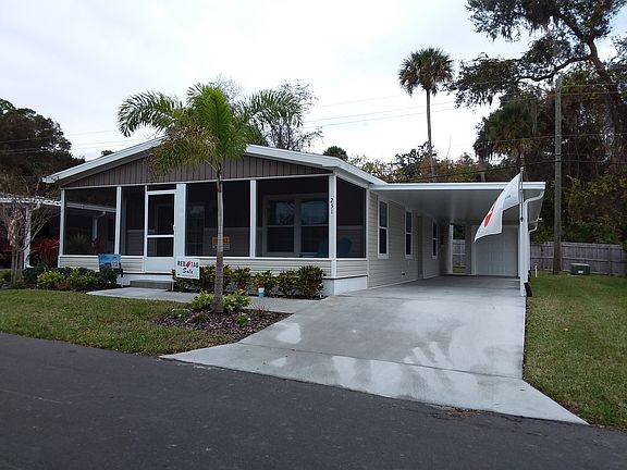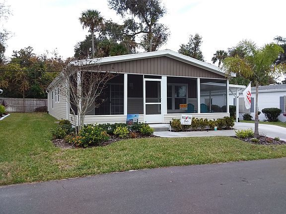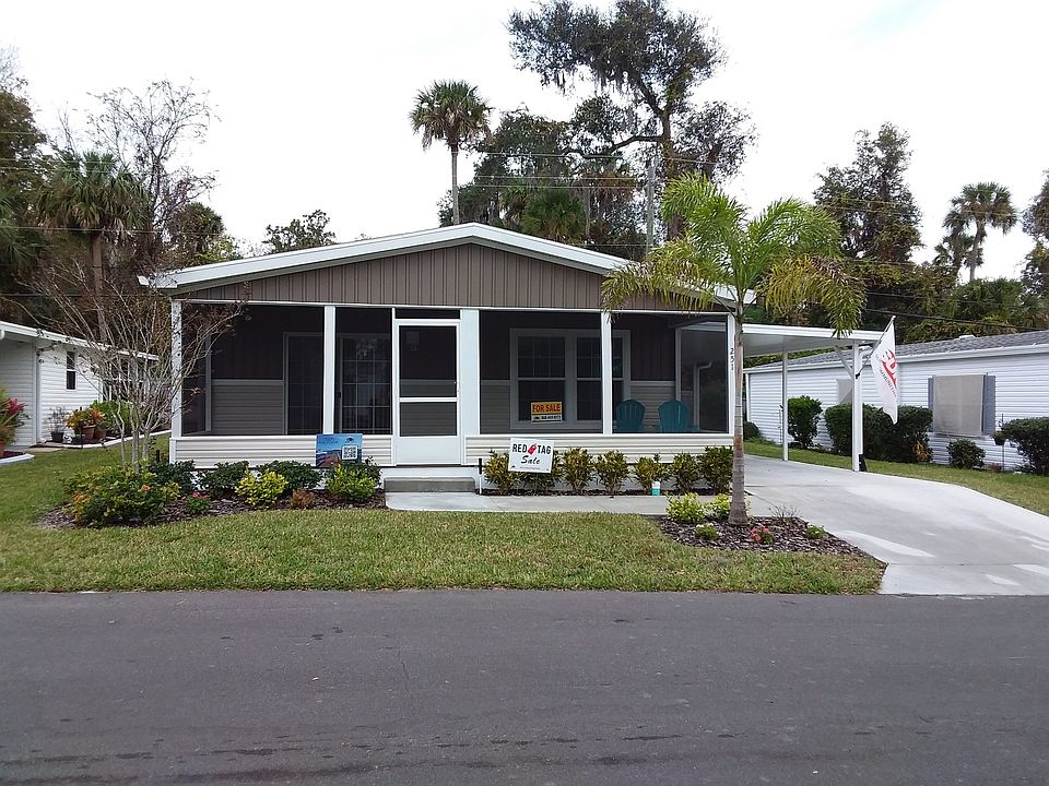 This gorgeous brand new 2020 two bedroom home with a den/flex room and peninsula kitchen is an absolute MUST SEE! The home boasts a large master suite, separate laundry room, laminate flooring in common areas with carpet in the bedrooms, crown molding throughout and neutral color scheme. Did I mention the large screened in front porch, outdoor golf cart shed and covered parking this home offers? Occupy yourself with our community activities and live worry free with the 7 year limited warranty this home comes with. Located down the street from the pier and dock. Call today to schedule a tour.