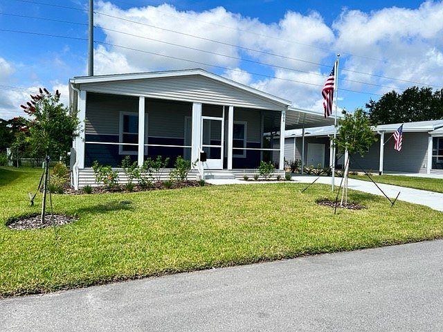 New Palm Harbor, 2 bed, 2 bath home with a spacious primary bedroom and den/flex room. LVT vinyl flooring throughout the home with carpet in bedrooms. All new stainless-steel appliances, with a farm sink, grace the open concept kitchen. A kitchen island/breakfast bar increased options for additional eating areas. Includes a full screened porch in front. Offers a 7-year limited warranty so you can worry less and live more. Meet new neighbors and enjoy our active 55+ resort style living. Call today to schedule your tour of this home.