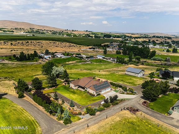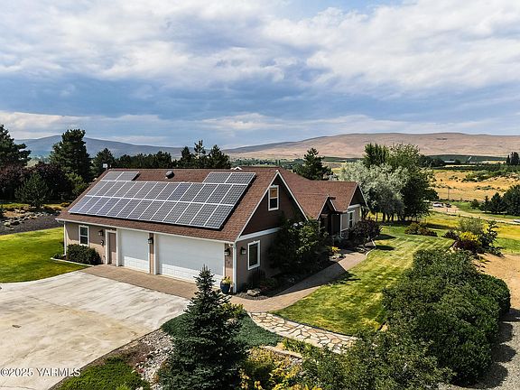Welcome to your dream retreat--this stunning, one-owner custom home, built in 2008, is perfectly nestled on 2.53 serene acres with 3.12 shares of Yakima-Tieton senior irrigation water rights, offering the ultimate in privacy, sustainability, and breathtaking views. Thoughtfully designed and meticulously maintained, this unique property blends modern comforts with a peaceful, self-sufficient lifestyle. Step inside to discover spacious living areas filled with natural light, high-quality finishes, and a seamless connection to the outdoors. The open floor plan is perfect for entertaining or quiet evenings at home, with large windows that frame sweeping valley views. With 3 spacious bedrooms, 3 full bathrooms, a dedicated office, primary bath with heated tile floors, and a versatile craft room, this property offers thoughtful spaces for both work and relaxation. Designed with sustainability and long-term savings in mind, eco-conscious buyers will appreciate the fully-owned solar panel system and a high-efficiency geothermal heating and cooling system--keeping your carbon footprint low and your comfort high all year round. Outside, the expansive acreage provides room to roam, garden, or simply enjoy the surrounding tranquility and stunning sunsets. This home offers unmatched comfort, privacy, and inspiration in a truly spectacular setting.