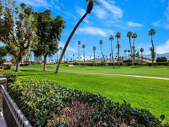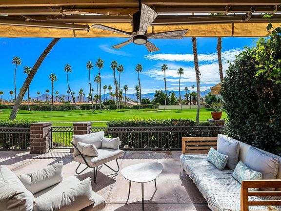 Views! Views! Views! Welcome to Monterey Country Club! Located on a prime South facing parcel & boasting awesome fairway & surrounding panoramic mountain vistas, this spacious 2 bedroom + den/office, 2 bath home can be your desert dream come true! The extensive remodeling & updating was completed in 2022. The wall was removed between the living room, dining area & kitchen creating an expansive great room featuring a high vaulted & beamed ceiling & fabulous golf course & mountain views. The new custom designed kitchen highlights a breakfast/eating bar. .The atrium was enclosed to create a den/office with a ceiling fan & 2 skylights added for natural light & one skylight opens for fresh air.. The primary bedroom suite includes 2 wardrobes & a luxurious new bathroom with a stall shower. The guest bedroom looks into the front gated courtyard & utilizes the updated hall bath with a tub/shower. Features include: all new wood-look ceramic tile flooring throughout; new baseboards; new light fixtures & canned lighting; fresh paint; new custom kitchen cabinetry, quartz countertops & breakfast/eating bar; new stainless farmhouse sink, refrigerator & range; new windows & sliding doors on the South side of the home; new window coverings; 2 sets of French doors in the home; new closet wardrobe doors; new toilets & bath vanities in both baths; new shower stall in the primary bath; an inside laundry area in the hall closet; a new water heater & an attached 2-car garage with a garage opener & a door leading into the gated front courtyard. Relax & enjoy the serene views from the patio area with sun & 2 electric awnings for shade. Brand new Sunsetter awing coverings to be installed in mid March 2025. A quiet cul-de-sac street & close proximity to the clubhouse, gym & tennis courts is a bonus. Monterey Country Club boasts 27 holes of golf; tennis courts; pickleball courts; bocce ball; fitness center; Clubhouse with restaurants & bar area; many social activities; 37 community pools & spas & a guard gated access. Note: some club ammenities such as golf, tennis & fitness memberships are at an additional cost.