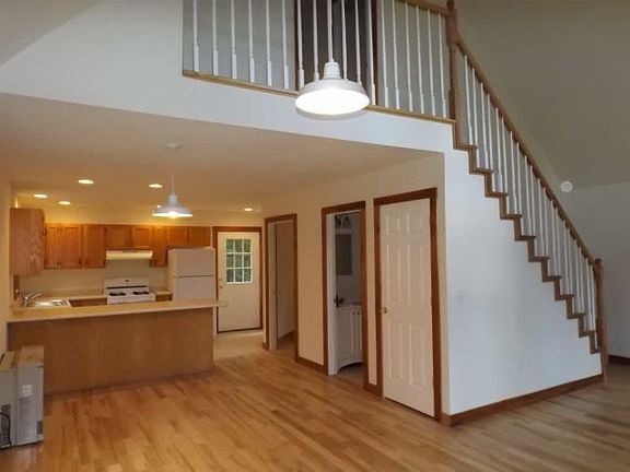New construction at the end of a dead end road. This chalet style home has great charm and affordability. This house offers tile floors in the kitchen & baths, hardwood floors in the living room and bedrooms. A great master bedroom loft with 1/2 bath and a balcony overlooking the living room. The massive 23x11 living area has a powerful open setting with 17' ceilings, and a bright open layout. A pellet stove in the lower level living area keeps the heat bills at a minimum. This house would make a great year around home, or the perfect mountain retreat. Enjoy the privacy at the end of the street surrounded by woods and rolling meadows. The house is next to a vast trail for the snowmobiler and just 8 minutes to Smugglers Notch for the skier or snowboarder. Easy access to rt 108 and only a couple minutes to Jeffersonville and just 35 minutes from Burlington down rt 15. Enjoy the ability to have country living but easy access to all the local conveniences. Shared private road
