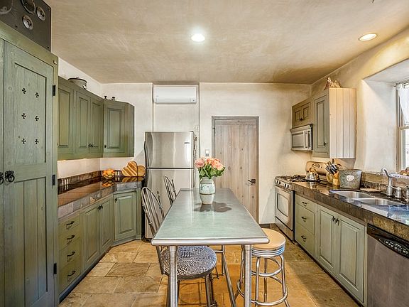 Just outside, an intermittent mountain stream runs through with aspen, ponderosa, and wildflower-filled canyon. Wildlife and serenity abound, and trails begin at your doorstep. Fully on-grid but off the beaten path—no cell service, no noise, total peace, with satellite internet available for those who need to check in with the world. The arts and culture of Santa Fe is just an hour away.