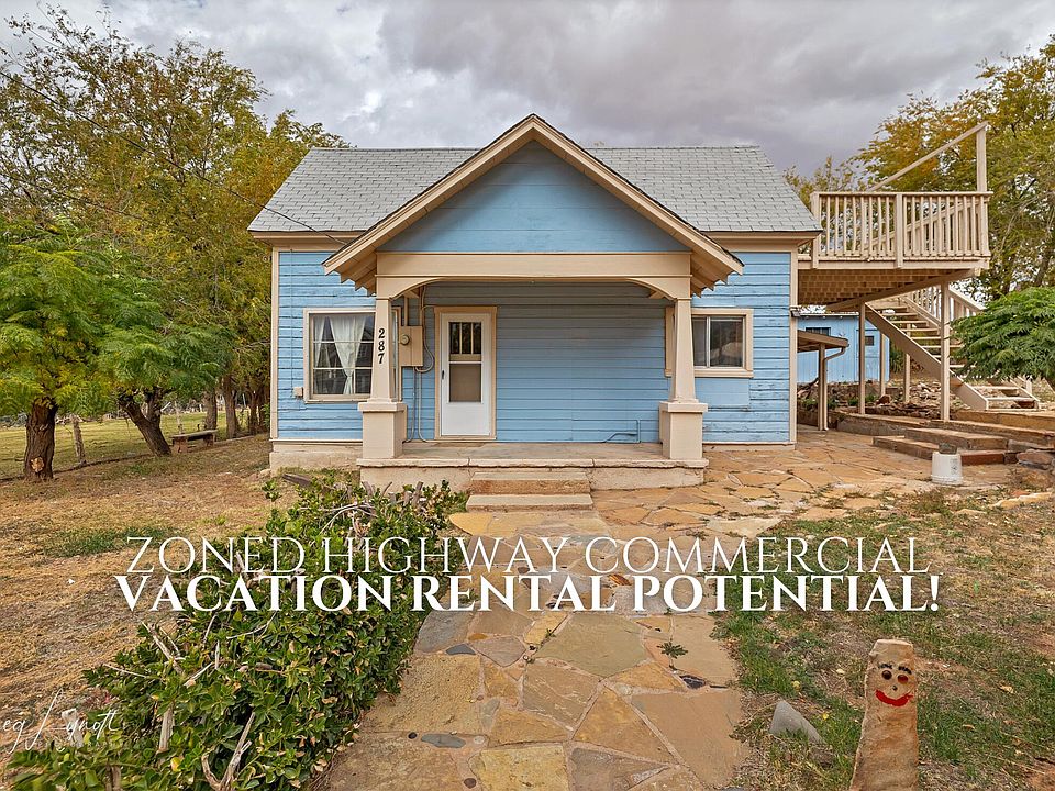 Adorable cottage with hard to find Hwy Commercial zoning located at the end of a quiet street! 20 miles from Zion Ntl Park. Possibility for a business, nightly rental, B & B, or peaceful residence. Situated on a corner lot with pastures to the north and west. Mature trees provide plenty of shade and include a variety of fruit trees. Fully fenced yard with storage shed and cellar for cold storage.