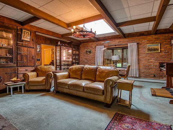 Enjoy the sight and sound of Stearns Brook from the kitchen window of this 8 room Milan home on approximately 12 acres. With rustic interior, this late 1960's house has been expanded by several additions over the years, including an enclosed front porch, an indoor pool and a second living room with loft area. There are two fireplaces, one in the expansive primary bedroom. Full basement with garage space as well as another detached two level barn style garage near the main road. Home is in need of updating and is being sold "as is" and the pool has not been used in years. Several smaller outbuilding structures in varying condition. Brand new septic system installed August 2023