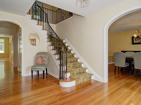 Classic 6-bedroom Brownstone front Colonial in the Old Country Club area of Ridgewood. Gracious Entry, Living Room with fireplace and Formal Dining Room lead to the new state-of-the-art Kitchen and adjacent Great Room with brick fireplace and 9' ceiling, the latter part of the addition in 2006. Also on the 1st floor are a Bedroom/Office, Bath, and Powder Room. The Master Suite on the 2nd floor includes 2 walk-in closets and a large new Bath with whirlpool tub and oversized shower. Four other generous-size Bedrooms and 2 new Baths on the 2nd floor. Walk-up attic storage. In the basement is a paneled Rec Room, large Exercise Room, Work shop and storage. The large rear Patio opens to a wide, flat back yard and beautiful gardens. Central Air