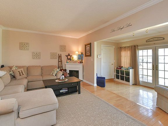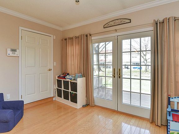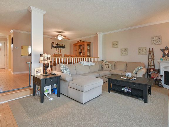 Largest 2 bedroom in complex. Solid hardwood floors on main level. Kitchen has newer Stainless Steel Appliances, Quartz counters & tile flooring. Updated windows and patio door. Crown moldings Ceiling fans in many rooms. Decorative fireplace will remain. Custom window treatments are included. 2 indoor storage closet are great for patio furniture. Deck, gas hook up for grill!