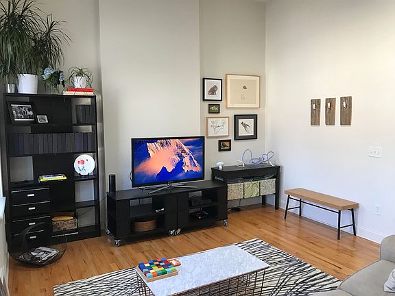 A stone's throw from Van Vorst Park, this two bedroom two full bath apartment sits in a quiet brownstone tucked into Liberty Harbor in Downtown Jersey City. Near the GROVE PATH station, Hudson Montessori School, and your choice of five star restaurants - all within a short distance. Great sq footage and closet space, plus an additional 12x12 secure and reserved storage area in clean basement, included. Abundant natural light with skylights and high ceilings make this home standout. Enjoy Central Air, private in-home washer/dryer and upgraded LED lighting. The two large bedrooms, one an en suite with walk-in closet, both accomodate large furniture. The open living area offers a modern kitchen and spacious living and dining areas. The home has been updated with paint touchups, has been thoroughly deep cleaned, and is ready for immediate lease start. PETS may be considered on a case by case basis and require an additional fee. Rental Parking is available nearby. Reach out today for a private viewing appointment!