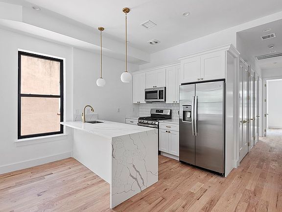 Enter into the elegant vestibule and be welcomed to a sun filled triple-exposure owner's duplex with high ceilings and a warm aesthetic created by the natural hardwood oak flooring, white cabinetry, & brushed brass hardware throughout. A perfectly laid out four-bedroom, three-bath lower duplex home with private backyard, featuring high-end finishes and craftsmanship.