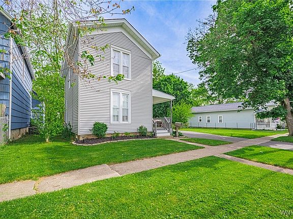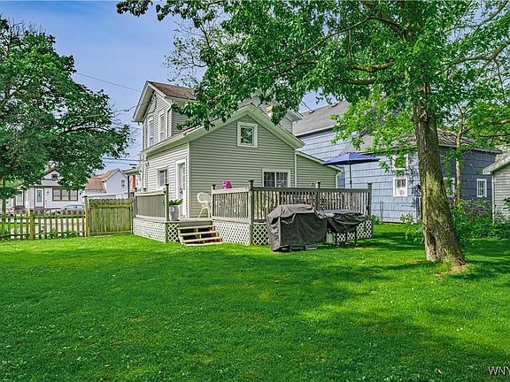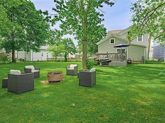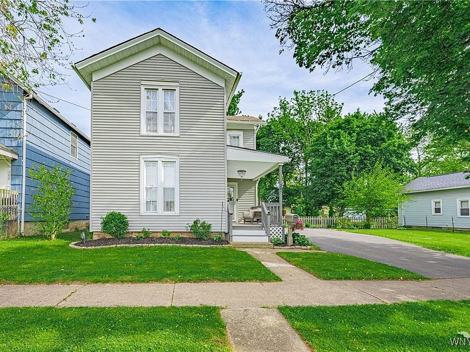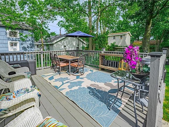 Pristine and well maintained! Gorgeous home situated on a double lot in a park-like setting. Fenced in yard and a shed. Front porch as well as large back deck. Open and inviting foyer with a living room and dining room. Stunning expansive kitchen with cathedral ceiling with exposed beams! Butcher block counters, tiled backsplash. Dishwasher 2025. First floor laundry. Full bath on first floor. Open staircase to second floor. 2 large bedrooms with oversized closets. Full bath as well. Updates include: 200 amp service and new wiring. 2016-New windows and New furnace. 2018 Copper and pex plumbing. Kitchen roof 2019. Porch roof 2020. 2023-New siding, sump pump, HWT and driveway. Home is beautiful. Offers due June 4, 2025 at 11:00 am. 2025-08-01