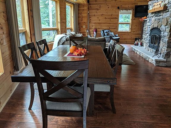 Stunning home- You must see the inside! Perfect vacation home w/plenty of room for guests & storage for snowmobiles & boats. Incredible, quality lodge on 2 private acres. Spacious home w/ 3 large bedrooms & a large loft, main floor bath w/large tiled shower & separate jetted tub & large tiled bath upstairs too. The 2 story wall of windows and stone fireplace are the focal point of the great room. This home is energy star certified & you'll enjoy all the comforts of home w/central heat & air, & a coal stove in the rec room. The home is being offered mostly furnished including a gorgeous pool table & all appliances. You'll find plenty of room for your toys with the attached 2 car garage and the 2 yr old 32x48 heated barn w/steel walls interior & exterior walls plus large overhang for additional storage. Fantastic recreation lovers location near main snowmobile trail, state land and the Redfield reservoir.