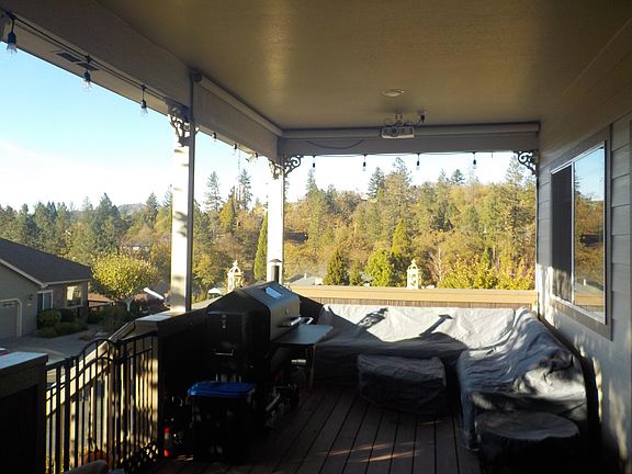Beautiful Custom View Home with newer high-grade floors throughout (top-grade laminate, plush carpeting, and tile), new Roof/Solar panels, and professionally painted inside and outside recently. Kitchen features custom cabinets, granite counter tops, bronze fixtures, pull out drawers, under cabinet lighting, built in micro, newer gas range/oven, dishwasher, and large double door fridge, plus pantry and lots of storage. Coffered ceilings with ceiling fans, newer light fixtures, and double-pane windows with custom window treatments. HUGE master bedroom with new attractive and practical pellet stove, dry sauna (negotiable), large walk-in closet and a great bathroom with jetted tub, double sinks, and new custom walk-in shower. Upstairs is family room with a gas fireplace and lots of space for family enjoyment plus ample space for an office area and/or exercise equipment. Enjoy the view from your comfy chairs on the front porch. The living room, dining room and family room also take in the view of the valley. Security cameras inside and outside. 30 amp charging station in driveway.