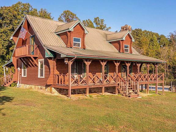 BREATHTAKING MOUNTAIN VIEWS from the rocking chair front porch. Beautiful log home on 3-acre lot. 3 BR, 2 BA, Greatroom w/vaulted ceiling, large stone fireplace w/insert, spacious kitchen w/island, breakfast nook, 2 bedrooms and bath on main level, true master on upper level, open loft bonus room, large laundry room. Front and back rocking chair porch, full unfinished basement, inground vinyl lined pool, chain link dog lot, & more. A MUST-SEE!