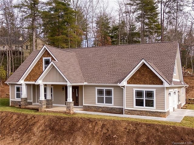Stunning, new Arts and Crafts home in ultra convenient location to Mills River, Brevard, H'ville and S Asheville. Decorator-inspired finishes throughout with strong natural light from desirable corner lot perched up yet with easy access, double garage. One-level living with bonus room, split bedroom plan, stone fireplace, side yard and views. Enter to find soaring, vaulted ceilings and spacious kitchen with large island. Exterior has top-notch LP Smart Siding with stone and wood accents. Just wait until you see the master bathroom! You will be surprised and delighted by this new home in established community. Golfers take note that Etowah Valley Golf Course is minutes away.