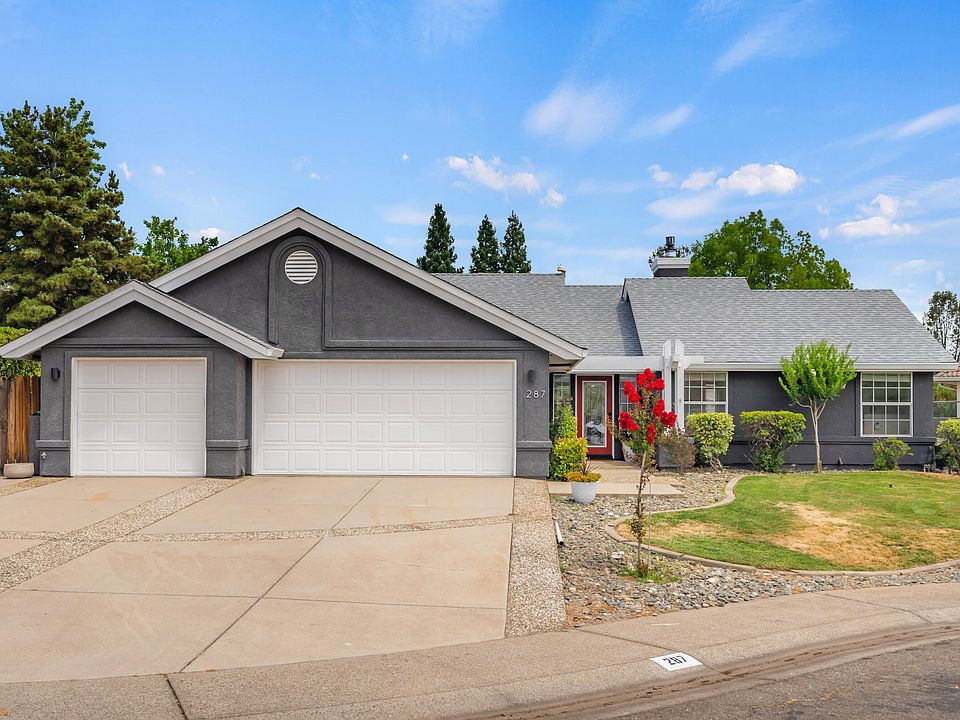 Welcome to the beautiful Quartz Hill neighborhood, where you'll enjoy the best of Redding's trails, recreation, and the Sacramento River. This home is eye-catching with its fresh paint and inviting curb appeal. As you step inside, you'll be greeted by a bright, sunlit interior, thanks to numerous windows that ensure privacy through mature landscaping. The expansive great room, centered around a cozy gas fireplace, seamlessly connects to the dining area, making it perfect for gatherings. The modern chef's kitchen features elegant dark cabinetry, a commercial-style refrigerator, and sleek granite countertops. Designed with a split floor plan, this home offers 3 bedrooms, 2 bathrooms, and 1,934 square feet of living space. This home is sure to leave you impressed