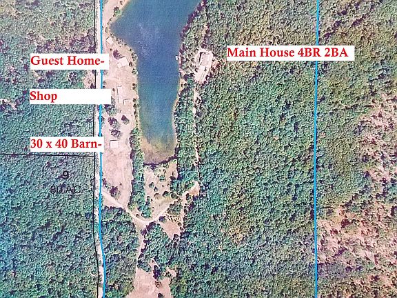 This 4 bedroom, 2 1/2 bath country home with walk out basement sits beside your private 14 acre stocked spring fed lake with dock on 80 acres of farm/hunting ground! The second 2BR 2BA home sits on the opposite side of the lake to provide privacy. 30 x 40 hay barn plus a 25x36 metal workshop and 20x30 machine shed provide shelter for your livestock and equipment. Lots of trails for atv's, hiking or horses. Hay field and pasture out front, with the rest in woods with many trails for your atv, horses or hiking, the Deer and Tukey are abundant. Minutes to Rockbridge Resort or a short drive to Gainesville or Ava with Springfield or Branson less than hour and a half away for all your shopping and entertainment! So many possibilities here! Great spot for your own resort or private spot for hunting and fishing or livestock!