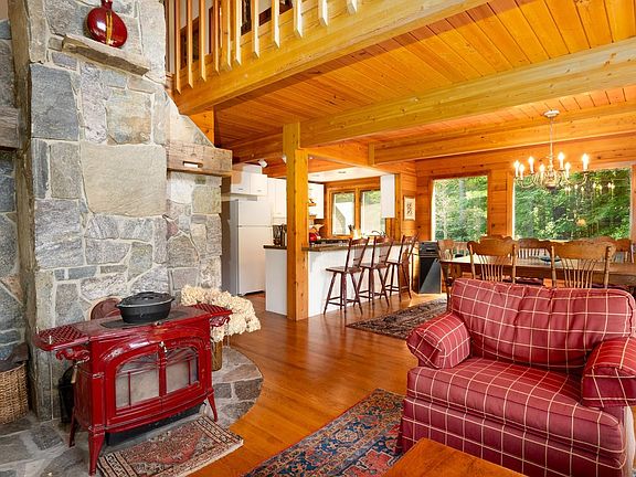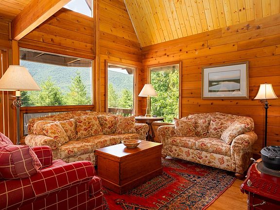 Beautiful Lindal Cedar Log Home on over 3 acres, with amazing mountain view in a quiet Sunderland neighborhood and minutes to Manchester and Arlington! Level rear yard for lots of possible activities on a pristine wooded lot that has a shed plus separate wood shed! Many upgrades by the current owner including large windows on the main floor for sensational mountain views and beautiful new covered entry to the front door! Primary bedroom on the first floor and the primary bath includes enormous Jacuzzi tub. The lower level has game room, full bath and bedroom! Another family room loft on the third level which has second deck, full bath and 2 additional bedrooms. All measurements approximate.