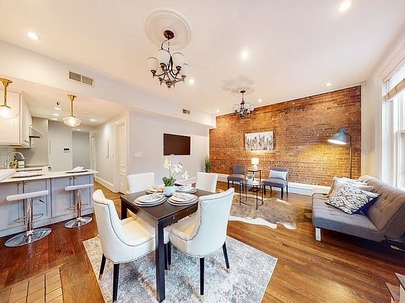 Look no further than this beautifully renovated floor-through condo on the sunny side of Marlborough St. for both modern amenities and classic charm. The thoughtful floor plan features a stylish kitchen that leads to a generously sized living/dinning room with an exposed brick wall, a mantled marble fireplace and a wide balcony perfect for entertaining and retreat. The south facing primary bedroom offers a large walk-in closet and stunning city views through the bay windows. The 2nd bedroom can be easily doubled as an office. Hardwood floor through out, central A/C, in unit w/d. Don't miss out on this amazing opportunity own a quintessential Back Bay home.