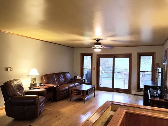 This newly updated 3 Bed 2 Bath Ranch has a bright and beautiful 500 sq ft living room/dining room addition which opens on either end to separate decks offering beautiful views for miles. The Master bedroom includes an updated en suite bathroom and walk in closet and there are gorgeous hardwood floors throughout. The lower walk out level is a great space for entertaining complete with a built in bar, the 3rd bedroom, a large laundry/storage room and a workshop. The large 2+ car garage also has it's own workshop This sweet property is country living but close to Ithaca, well maintained and ready for a new story to begin!