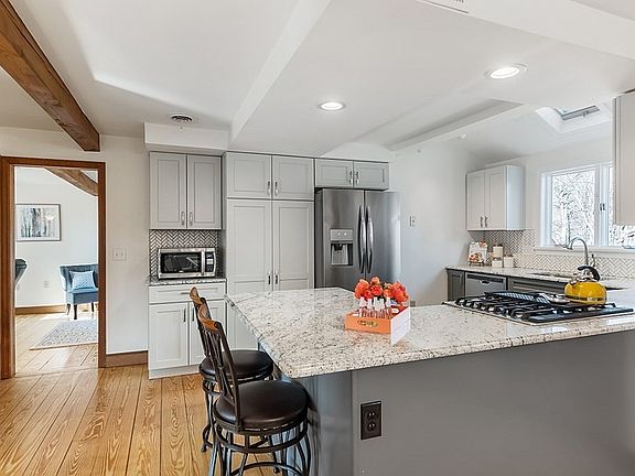 Call 781-964-1559 to schedule a showing at this beautiful home. "Fall in Love" & Step Back in Time to when Homes were well BUILT. Set on over an Acre this Lovely 3 bed Colonial offers the Savvy Buyer a Beautifully Updated 2020 Kitchen with granite counters, SS appliances & gas cooking, Romantic Dinners in your fireplace Dining Room & Rest & Relaxation in the wood beamed Living Room. Many other possibilities on the first floor for either an additional bedroom, home office or exercise space. Large Laundry & Updated 2020 ½ bath complete this floor. Upstairs are 3 large beds with wood paneling & a full bath. Searching for a Big Private Backyard? You will find your nature retreat her! Host the summer BBQâs, Softball Games and Family Gatherings around the fire pit. Take a stroll to the close by Falls Pond for kayaking, swimming and fishing! 2 Car Detached Garage, Central Air, Hardwood Flooring, 200 amp electrical, Security System. Showings begin by APPOINTMENT Friday 4/9 & Saturday 4/10, Public Open House, Sun. 4/11 from 1 to 3.
