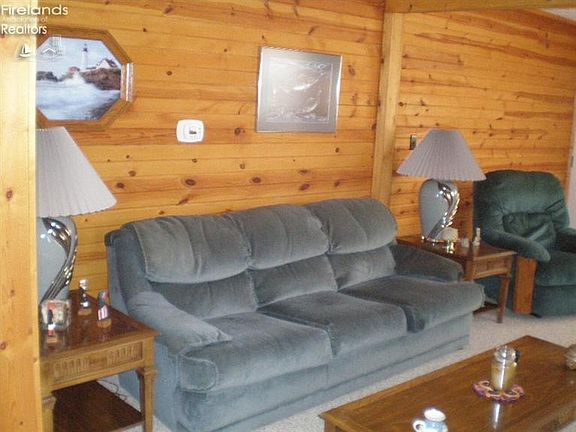 The 3 spacious bedrooms will sleep 7 people. There is a large living room to relax and watch a movie or your favorite sports event this fall or over the winter. There is a large front patio to enjoy the sun and partial lake views. There is a large storage shed to keep your golf cart in and your fishing gear.
