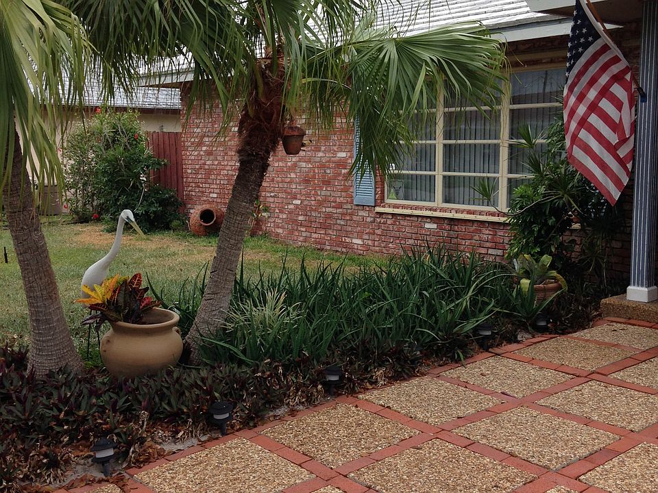 Beautiful brickface stucco four bedroom two bath with one bedroom converted to a den tv room. Entry way opened up to living room and dinning room with easy access to covered patio pool and kitchen overlooking patio and pool. Full concrete base shed in back and two car garage with large workbench and built-in storage. Well laid out functional home for dream home living.