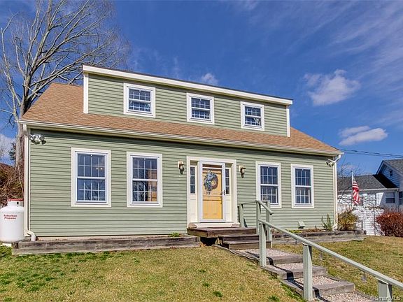To be featured in HGTV Magazine this year This custom-built Cape is a true gem. Enjoy shimmering views of the Mystic River & be .5 miles from downtown Mystic & all that it has to offer. Both the kitchen and laundry room have been completely & tastefully updated with the last 2 years. Enter the welcoming new kitchen featuring soapstone counters, subway tile, & new appliances including a dual fuel downdraft stove. This connects to the relaxing family room wood stove & French doors, which leads out to one of two outdoor decks. To the left of the kitchen & staircase is the formal dining room & home office with built-in bookshelves, which could alternatively serve as a nursery or craft room. A spacious full bath & the new laundry room with LG large capacity D & storage area round out the the main floor. Crown molding, natural wood trim window casings, & 6" wide tongue-and-groove pine flooring give this home a timeless feel. Extra-thick insulation, low-E windows, storm windows & storm door, multi-zone heating, ceiling fans, the home's southeast facing orientation, & the option to use the wood stove as a primary heat source all work in concert to minimize energy costs. Step outside and the home features two Brazilian hardwood decks, perennial gardens, sprinkler system, enclosed partial wooden picket fence, and stone walls. The property also includes a 3-bay garage, already wired for electricity, workbench, & garage door opener. Flood insurance is NOT required