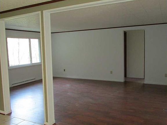 Solid concrete block ranch on 23.8 acres, mostly wooded. Clean, updated floors. Large living room & dining room.